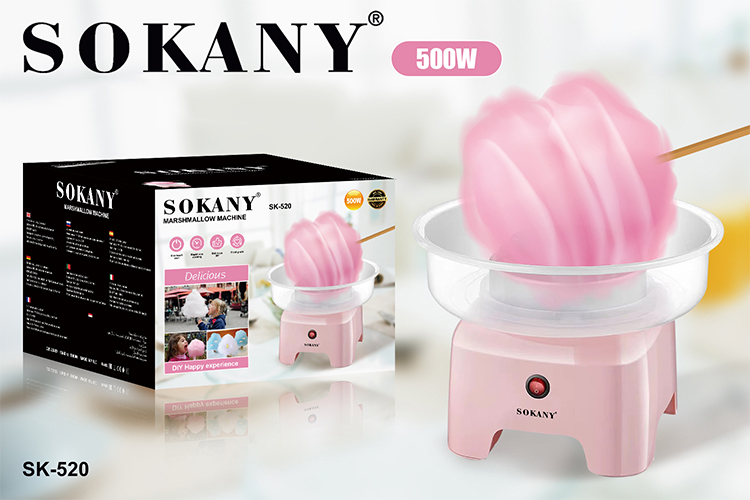 Aparat de facut vata de zahar Cotton Candy, Sokany SK-520, 500W, Lingura, Picioruse Anti-Alunecare, Roz