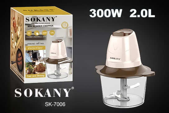Tocator electric Sokany SK-7006, 3 lame din otel inoxidabil de inalta calitate, motor puternic 300 W, capacitate 2L, design compact, Rosu