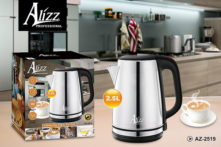 Fierbator Alizz AZ-2519, 1500W, capacitate 2.5L, control temperatura, indicator luminos, Negru/Inox